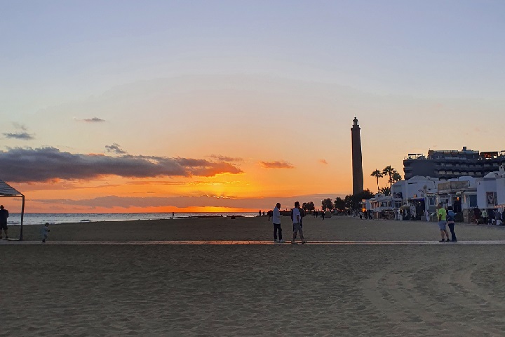 Die Hauptzeit haben wir in Maspalomas mit den ewigen Sanddünen verbracht. Einen riesigen Leuchtturm und unendlichen Meerblick kann man super auf der Skybar im Hotel Faro der Lopesan Collection genießen. Einige Souvenirgeschäfte und Restaurants finden sich an entlang der Strandpromenade.